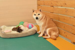 赤豆柴のお母さん犬と、赤ちゃん犬です。