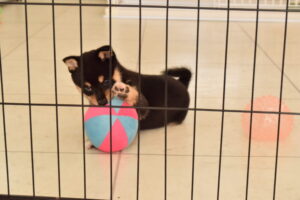 子犬はすくすく成長中!おもちゃで楽しく遊びます😊
