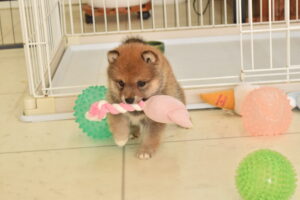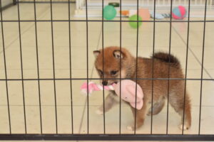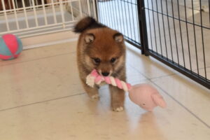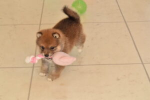 子犬はすくすく成長中!おもちゃで遊ぶようになりました😊
