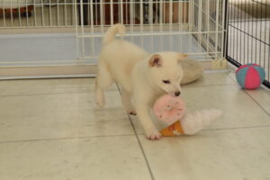 赤ちゃん犬はすくすく成長中!おもちゃで遊ぶようになりました😊