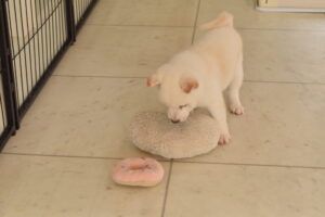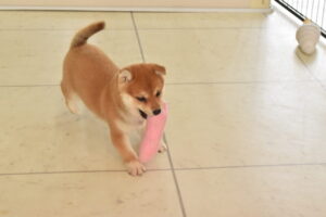 赤ちゃん犬はすくすく成長中!おもちゃで遊ぶようになりました😊