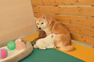お母さん犬は優しく赤ちゃん犬を育ててくれています♪