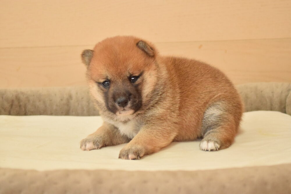 小柄なお父さん犬と、大人しくて優しい顔立ちの可愛いお母さん犬から産まれた子です。