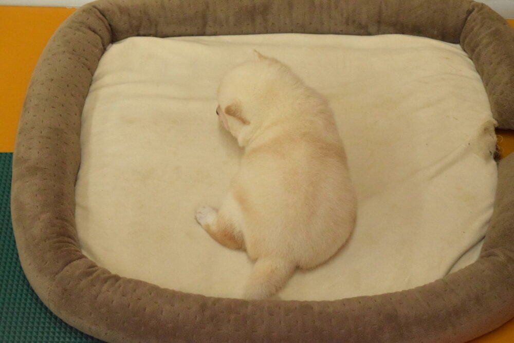 この子は小さいタイプの豆柴ではありませんが、将来はコロンとした体型の可愛い子に育つと思います。