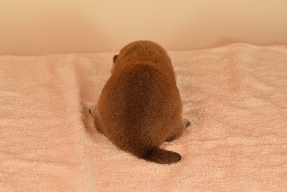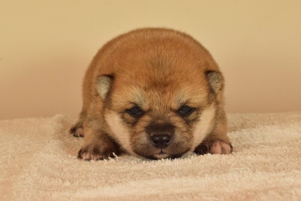 この子は小さいタイプの豆柴ではありませんが、将来は手足が短くコロンとした可愛い子に育つと思います。