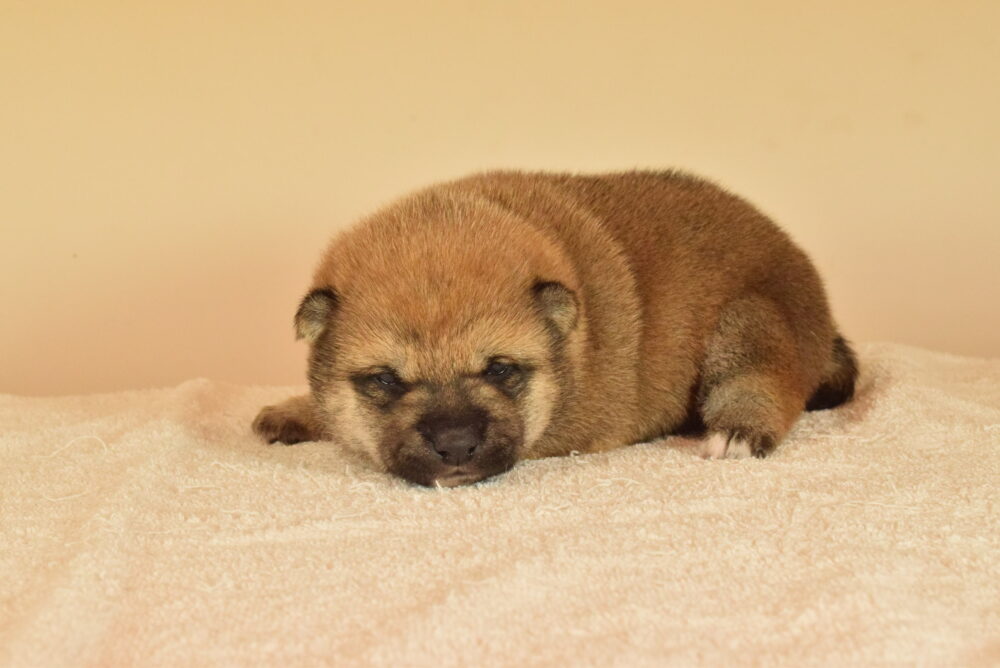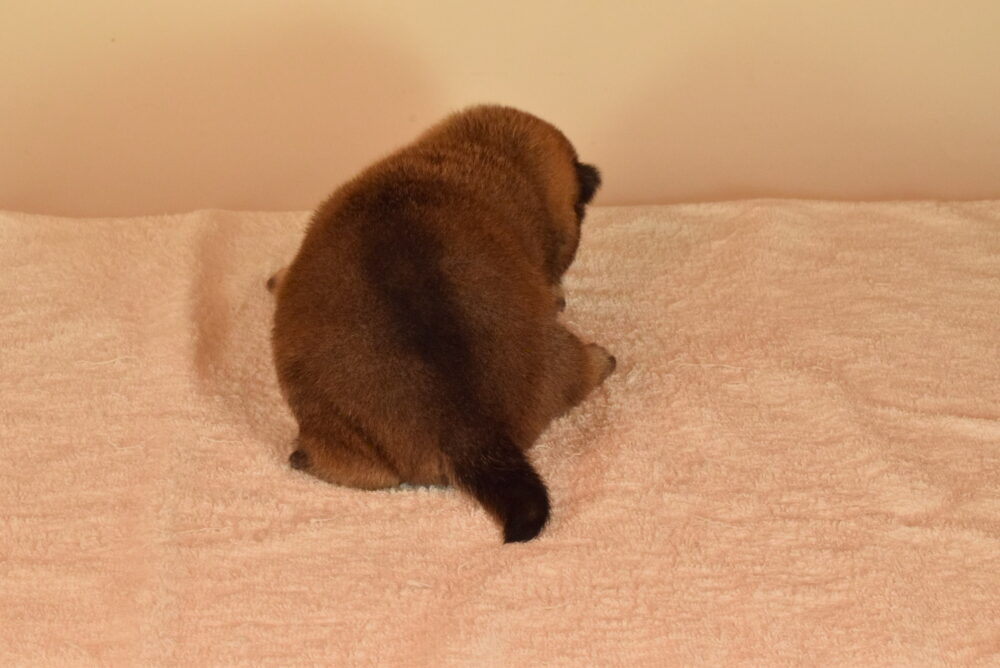 この子は小さいタイプの豆柴ではありませんが、将来は手足が短くコロンとした可愛い子に育つと思います。